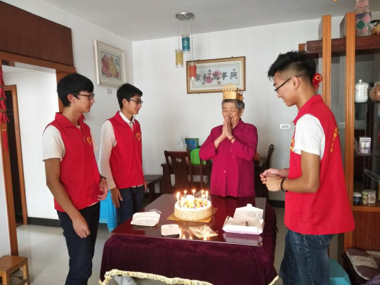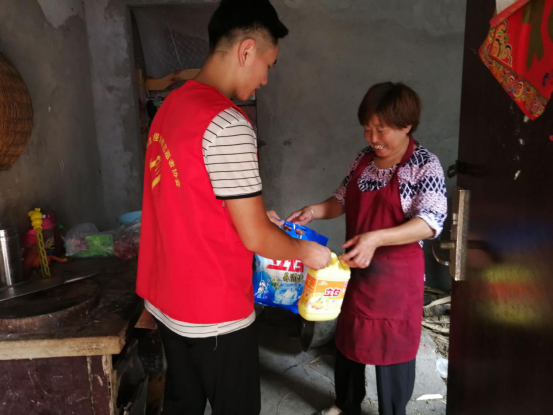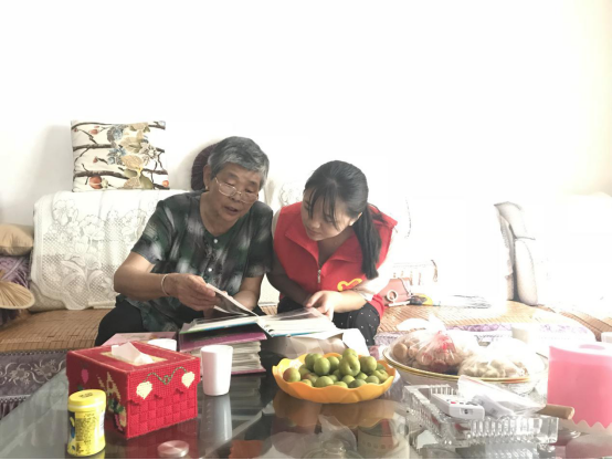 2018年9月22日早上志愿者们迎着绵绵细雨,携带着为老人们采购的一些牛奶、洗衣粉等生活物资来到的花园村特困户老人们的家中,志愿者们开始陪老人们谈心,聆听着他们精彩的故事。与老人们交谈、互动时,我的内心“砰”的一下,装满了温暖。而我们的付出换来了老人们的一句“谢谢你好孩子”多么有意义的一句话。