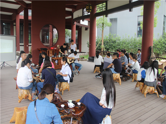品谈会中社员们都纷纷发表自己对茶的一些见解。一位学财管的妹子说品茶可以让她在这匆忙的生活中静下心慢下来。大二的学姐说可以放松心情。是呀,我们可以在茶的清香里找到自己最真实最纯真的一面,和志同道合的人品一口清茶,别一样的韵味。不仅如此,更有社员弹唱了一首《安河桥》为品谈会增添了乐趣。所有的参与者都沉浸其中,不亦乐乎。