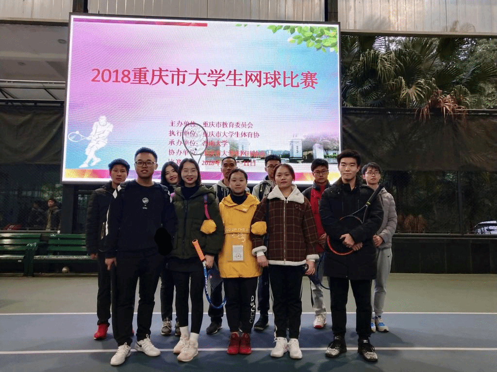2018年11月7日至11日,重庆市大学生网球比赛在西南大学成功举行,来自全市25所高校的800余名运动员参加了本次比赛。比赛分甲、乙、丙、丁四个组别,我校网球代表队共派出11名运动员参加了男、女甲组的比赛。