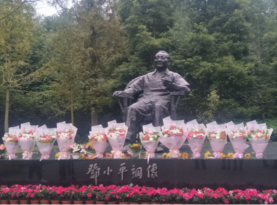 我们来到了小平铜像前,眼前的这位老人嘴角带笑端坐在椅子上,睿智而慈祥地看向前方,谁也不知道他在思考什么。站在我们身旁的一位老人,久久凝视着小平,微微颤动的双唇道了一句“小平您好”,这一声问好,不禁使我们热泪盈眶。