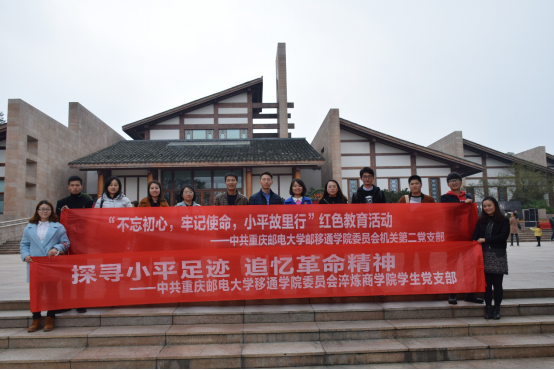 为纪念中国共产党建党97周年和改革开放40周年,缅怀邓小平同志的丰功伟绩,学习和传承老一辈无产阶级革命家大公无私、坚韧不拔、攻坚克难的伟大精神,进一步推动学习贯彻习近平新时代中国特色社会主义思想和党的十九大精神,11月10日,中共重庆邮电大学移通学院委员机关第二党支部和淬炼商学院学生党支部联合开展小平故里红色教育活动。