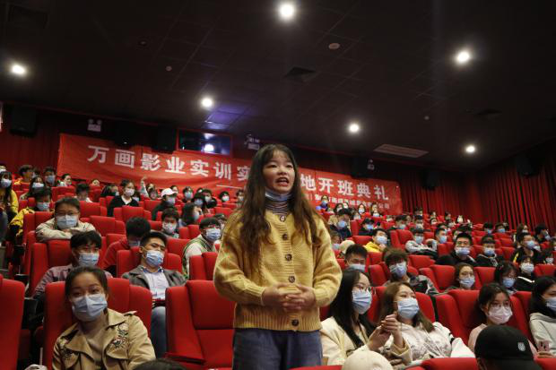 活动结束后,学员与老师集体在影厅门口留影纪念,相信他们未来一定会努力奋斗,为自己为万画影城为学校的将来贡献力量!