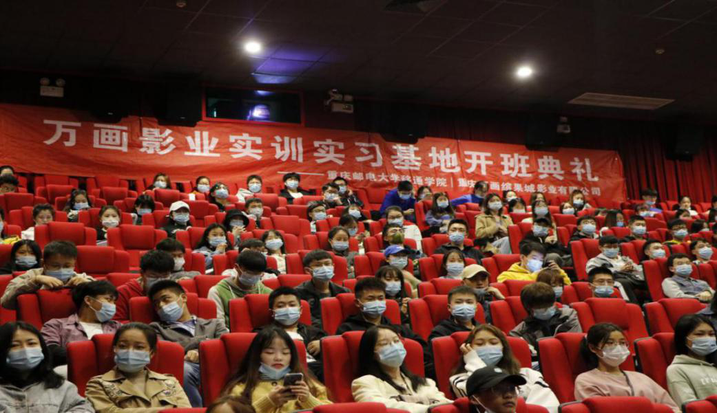 10月14日下午17:00,第九期万画影业实训实习基地开学典礼暨第八届影业实训实习基地学员结业典礼在万画影城隆重举行。北京万画影业投资有限公司张燕副总经理,重庆万画缤果城影业有限公司杨磊经理,重庆邮电大学移通学院钓鱼城科幻中心张凡主任,教务处胡婷科长、吴颖老师,辅导员邓兴强、李九昌、张琼心、叶进等老师以及万画影业实训实习基地的各位培训导师,出席本次典礼并为获奖的学员颁奖,第八届和第九期全体万画实训学员参加此次活动。活动由我校2018级艺术传媒学院饶珂瑞主持。