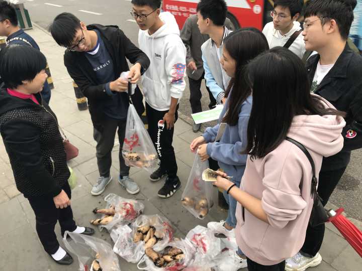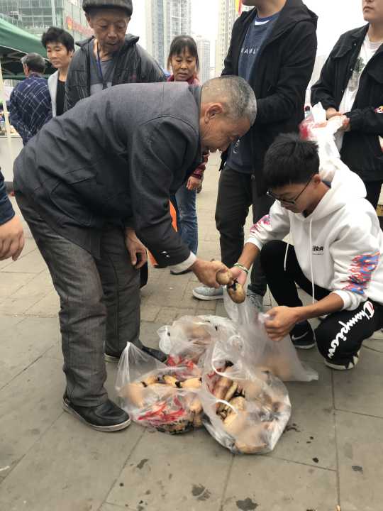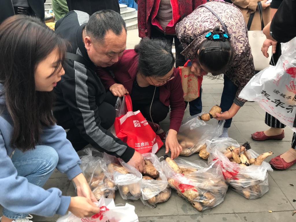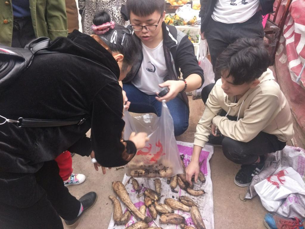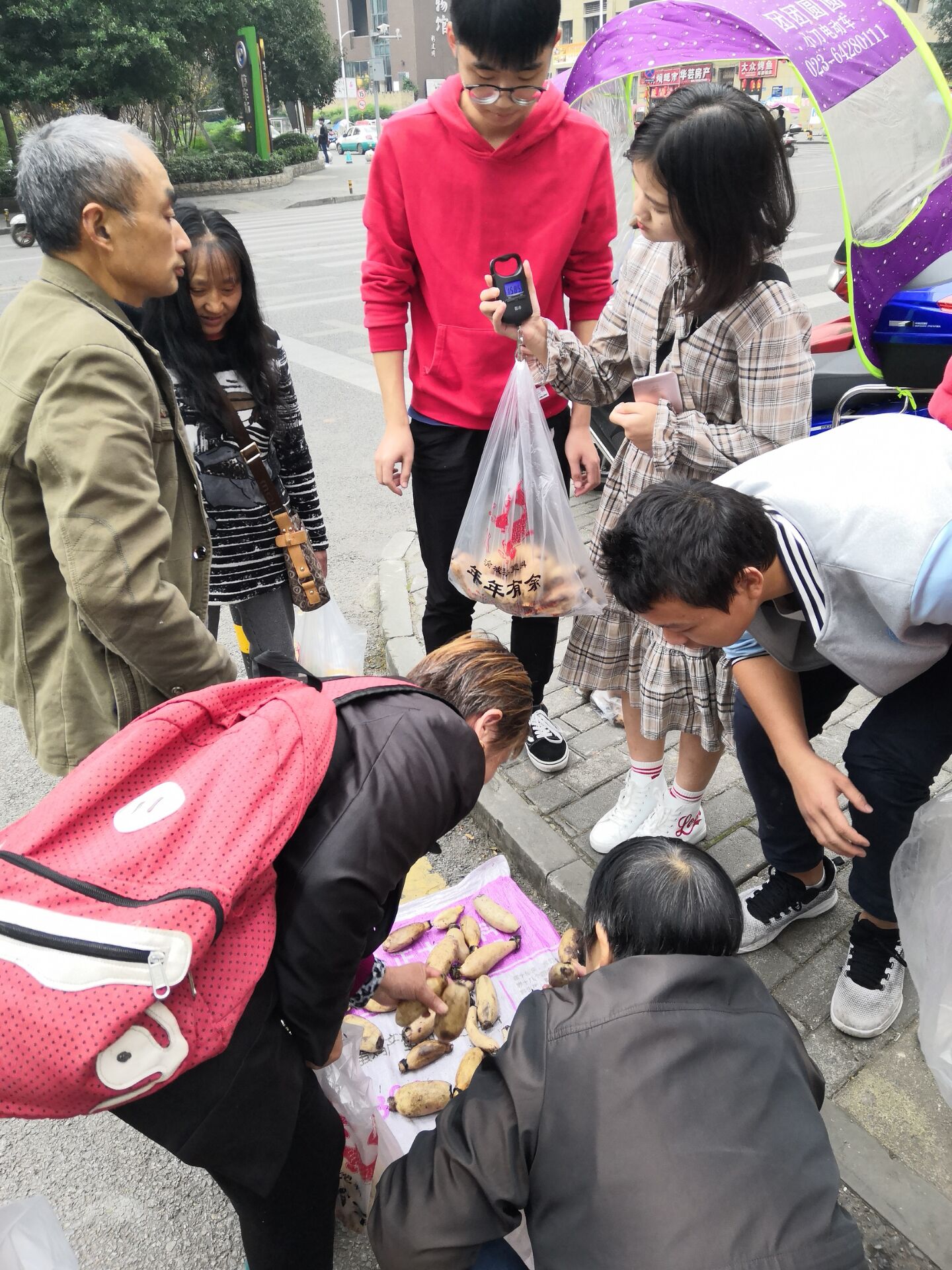 简短的出征仪式之后,各代表队便迅速渗透到学校周边各个场所,学校老师们听说后也纷纷打听营销队伍的所在地,希望自己能够购得同学们亲手采挖的莲藕,为公益事业添砖加瓦。学校周边住户、商户们,听说同学们卖的是学校原产、学生亲手采挖的莲藕,都赞叹不已!学校外卖炒饭的阿姨见学生提着袋子经过,便强烈要求购买莲藕,还追问同学们挖藕的过程,看到同学们手上还未完全祛掉的淤泥、刮痕感到十分心疼,阿姨真诚的对同学们说:之前都是你们在照顾我的生意,现在我也要照顾你们的生意!