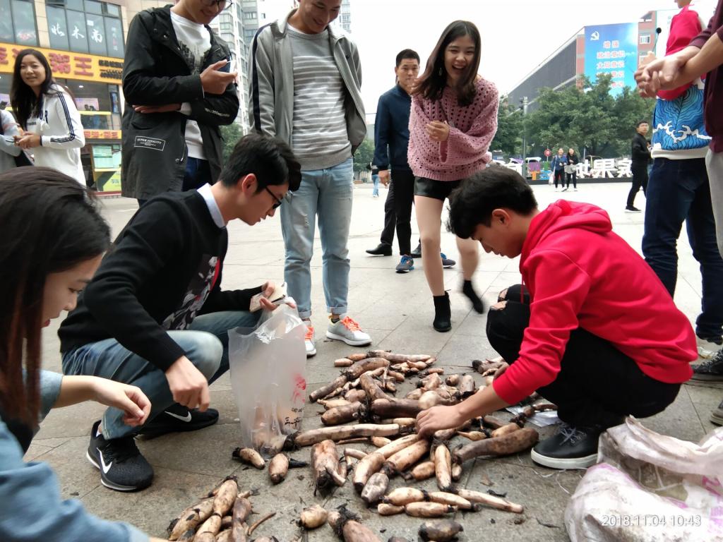 11月4日上午9:00,各参赛队伍再次集结,展开了首届校园荷塘文化节第三项子活动——“荷乐不为”公益营销大赛,销售同学们自己亲手采挖的莲藕,为公益助力。