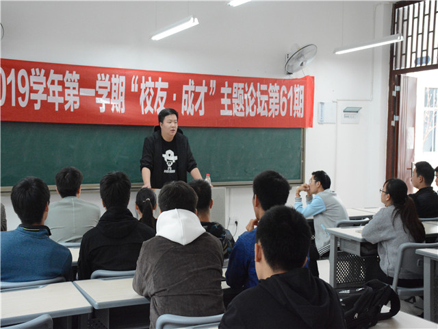 2018年10月26日,智能工程学院在松格书院103举办了第61期“校友·成才”主题论坛。本次论坛邀请了周宗将校友和罗斌星校友作为主讲嘉宾。