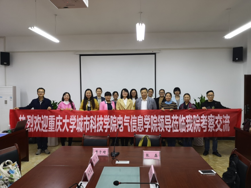 10月31日下午,重庆大学城市科技学院电气信息学院的领导和骨干教师一行来我校针对电气工程及其自动化专业建设和实验室建设进行交流学习。交流会在艺术楼101会议室进行,出席此次会议的有党晓圆副院长、汪纪锋教授、电气工程教研室主任杨佳义老师以及智能工程学院相关老师。