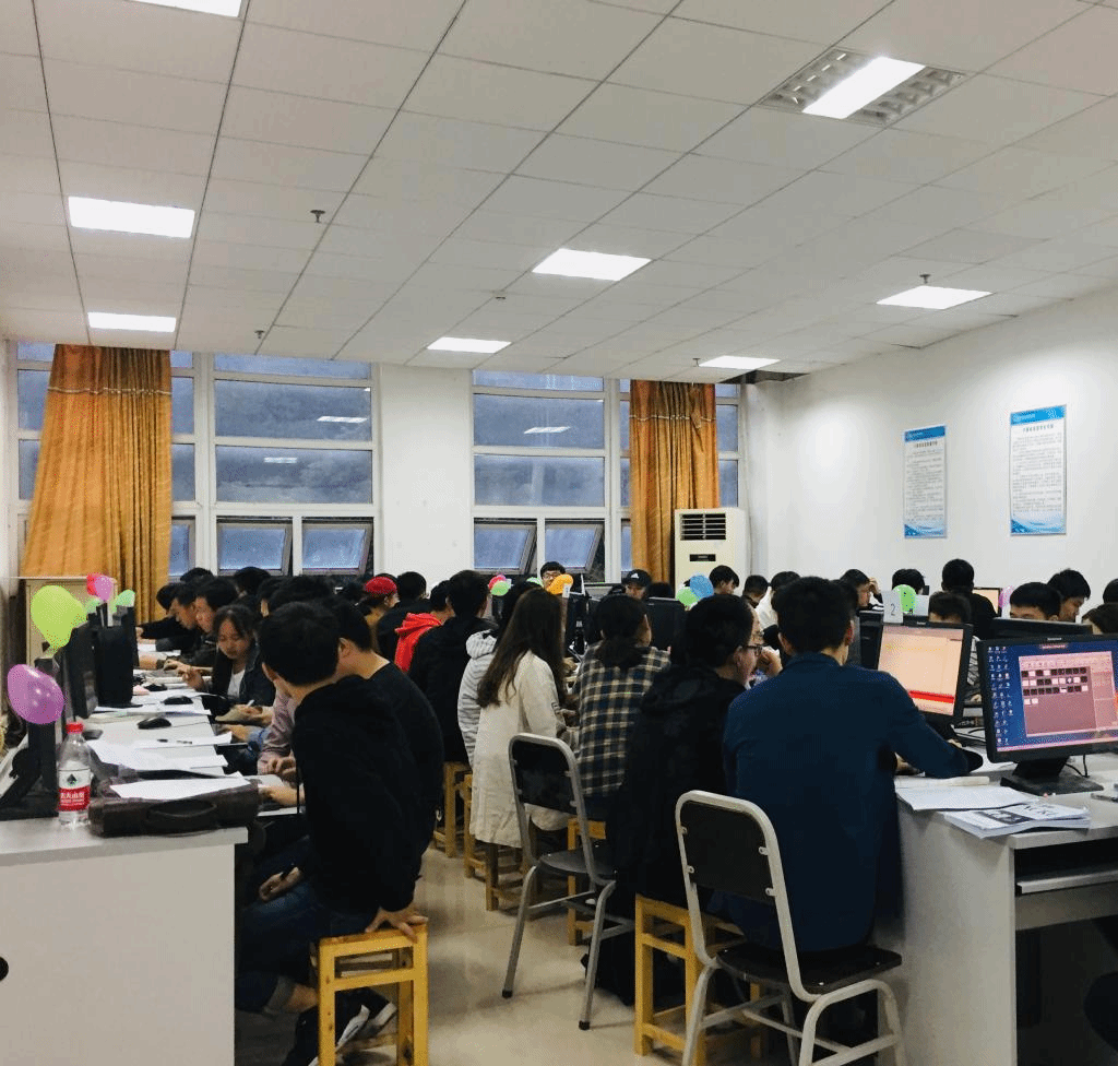 第二届大学生程序设计大赛,由大数据与软件学院承办,在大数据与软件学院郑先锋院长的带领下,创新中心总负责人霍敏霞老师从9月开始组织筹办,经过大数据与软件学院、通信与物联网工程学院、智能工程学院、双体系等院系老师积极动员学生报名,在学校各职能部门积极配合下,于10月31日顺利举行。本次大赛共86支队伍报名,258名学生在图书馆6楼的五个赛场,角逐程序设计的冠军。相比去年的43支队伍,无论从队伍数量还是学生水平都有很大提高。