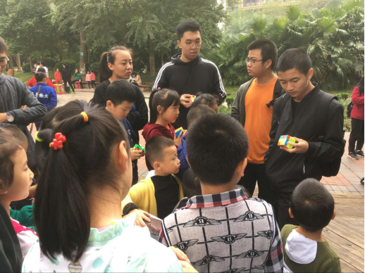 又是一年金秋岁月,又是一个丰收的季节,重庆邮电大学移通学院魔方社本着推广魔方文化,走进社区服务的宗旨,在2018年10月27日的早晨到丽景水岸社区办了一场名为的艺术的魔方现场教学活动,主要面向小区的儿童,培养小朋友们对于魔方的兴趣。