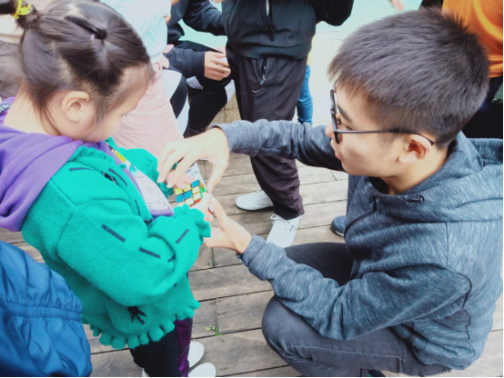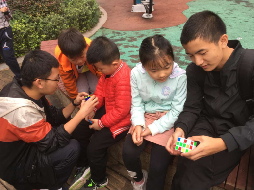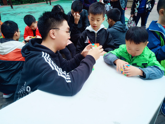 时间很快就过去了,在临近中午的时候,魔方社的同学们组织参与本次培训的小朋友们进行了一次现场考试,对用时最短拼出一面魔方的小朋友进行奖励,赠送一个魔方。本次活动进行的很圆满,小朋友学到了知识,家长们在观看的过程中也拍手称赞,希望多来社区组织这样的公益活动,让孩子们不再呆在家里打游戏或者看电视。甚至在活动过程中,有的家长就主动带着小朋友到外面超市买了魔方来参加学习。