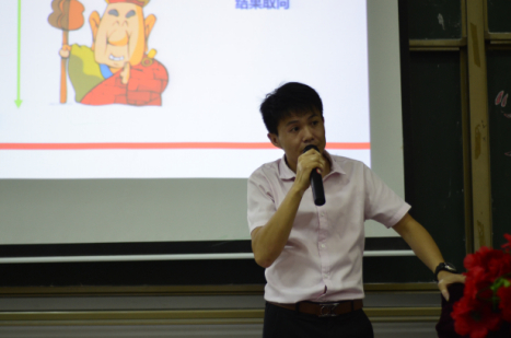 讲座开始,陶老师用风趣幽默的语言讲述了当今大学生普遍存在爱打游戏、谈恋爱、课堂上睡觉、玩手机等现象。这样的生活像是已顺应时代潮流成为校园生活的主流,其实并不是学生们不想努力,而是他们根本没有找准自己的位置,不清楚自己所扮演的角色。