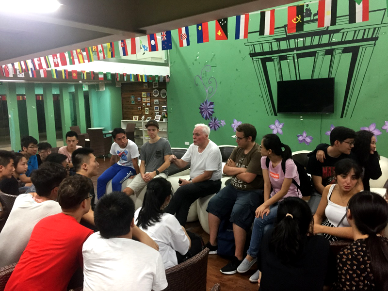 一天的生活完满充实,在班级导师的带领下开辟德语学习新天地,同学们有序的来到中德书屋和外教自由的交流。这些优秀的外籍教师精心组织了益于学习的、各种各样的活动,帮助同学们练习口语。最令同学们感兴趣的是有关交流与沟通的小游戏,还有精彩的德文歌曲对唱,德语绕口令以其独特性让同学们在欢笑中体味到了德语的快乐。同学们的兴致高涨,现场充满了欢乐的气息。在德语角,少了一分师生身份的阻隔,多了一分朋友相处时的热烈氛围;少了一次僵硬的课堂教学,多了一次活泼生动的文化交流。