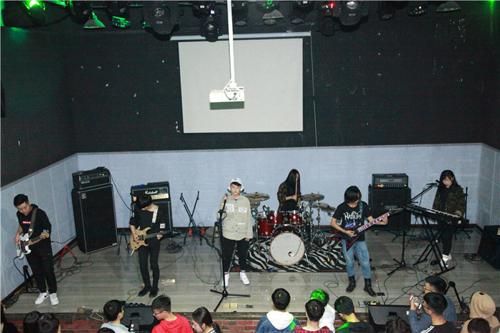 乐队对音乐热爱如同潮水一点一点蔓延,通过他们动人的旋律渗透进每一个听众的心里,鼓点和音乐的节奏契合着,他们在舞台上是多么的耀眼夺目,为了音乐的梦想他们一路前行,从未停止脚步。
