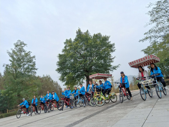 整齐的亮蓝色队服成了路边一道亮丽的风景线,在保证安全的基础上,队员们在道路上尽情享受骑行。上了几个坡,拐了数道弯,抵达了目的地。