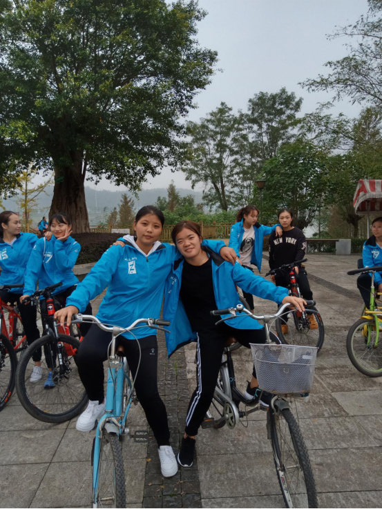 在终点宽敞的空间里,队员们来了一场趣味十足的竞赛,由跑步追逐到自行车比拼,激情澎湃,笑声不断。这样的比赛不仅能够帮助队员们激发自己的爆发力与反应力,还拉进了教练与队员,队员与队员之间的距离。在这里,女足们不是同一个球队中队员的关系,而更像是一个友爱互助的大家庭。
