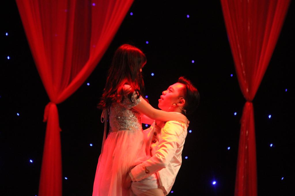 在《瑞贝塔》的节选中,妖艳的红色灯光配上性感的舞蹈,现场的气氛一下子被引燃,他们屏住了呼吸,随着女演员们的动作,尖叫着喊着演员的名字,主角的深情对唱,充满了张力与活性,一种爆破血液的冲击感油然而生。故事中,男主角因为懦弱不敢与女生接触,但在不断的尝试中,男主角打败了懦弱与自卑,勇敢高唱,最后得到了心仪的女孩。观众们也随着音乐的节奏和故事的发展而变换表情,与故事的主角们同悲共喜。勇敢与自信,是人们成功的最好药方。