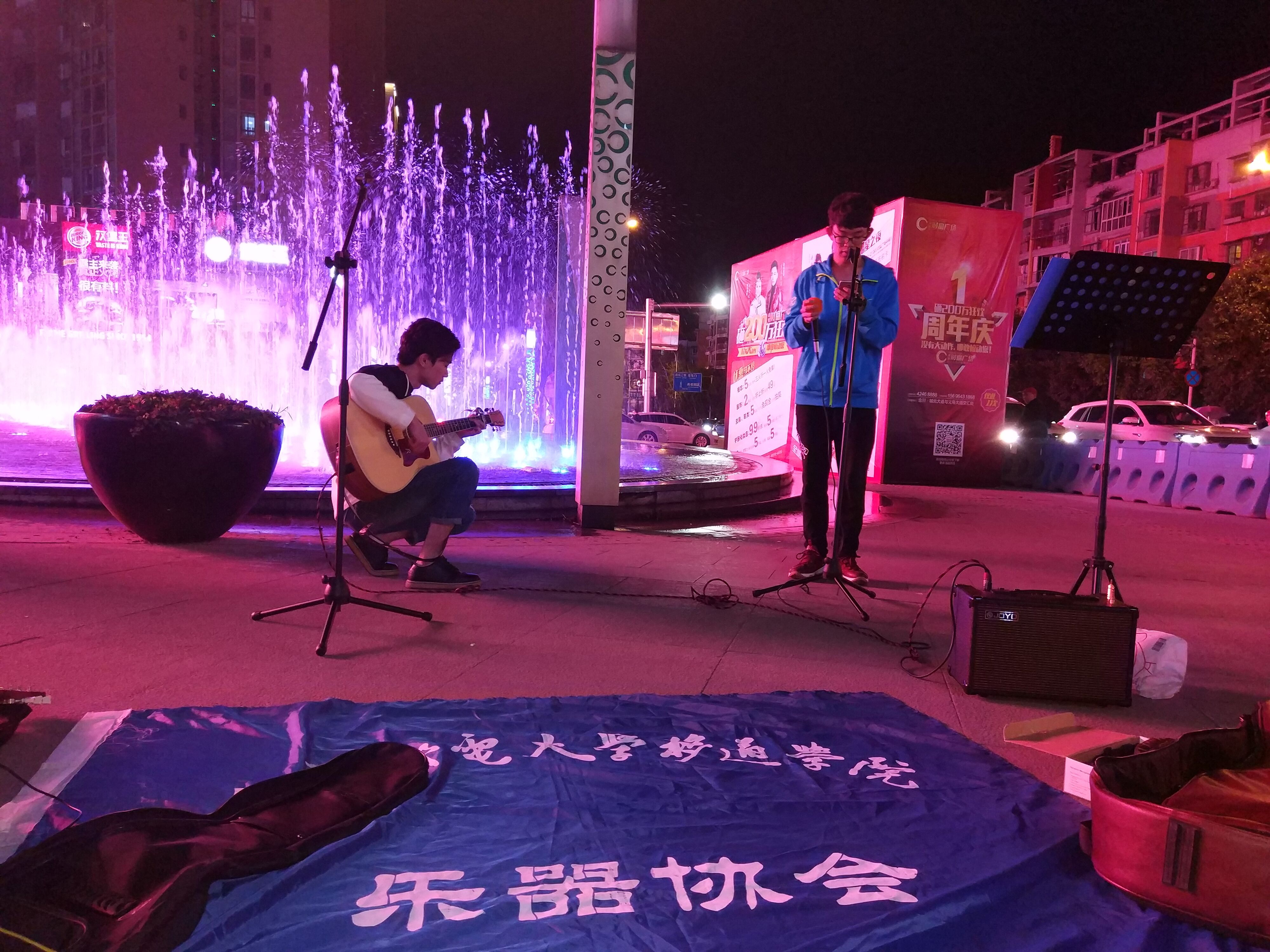 音符的跳动带给你我一次奇妙的音乐之旅!时而触摸大自然的宁静,时而体验速度的刺激!乐器协会本月来到合川长久步行街,开展街头义唱活动!吉他配电子琴,加上主唱魅力的嗓音吸引了许多路过的市民驻足观赏。最终,我们获得的义款将全部捐给贫困地区的孩子们,为公益事业做出自己的一份力量!