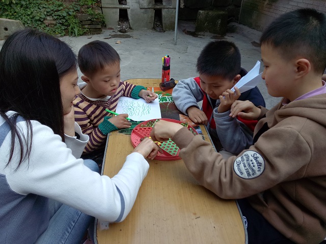 (社员志愿者们在给孩子们上课)