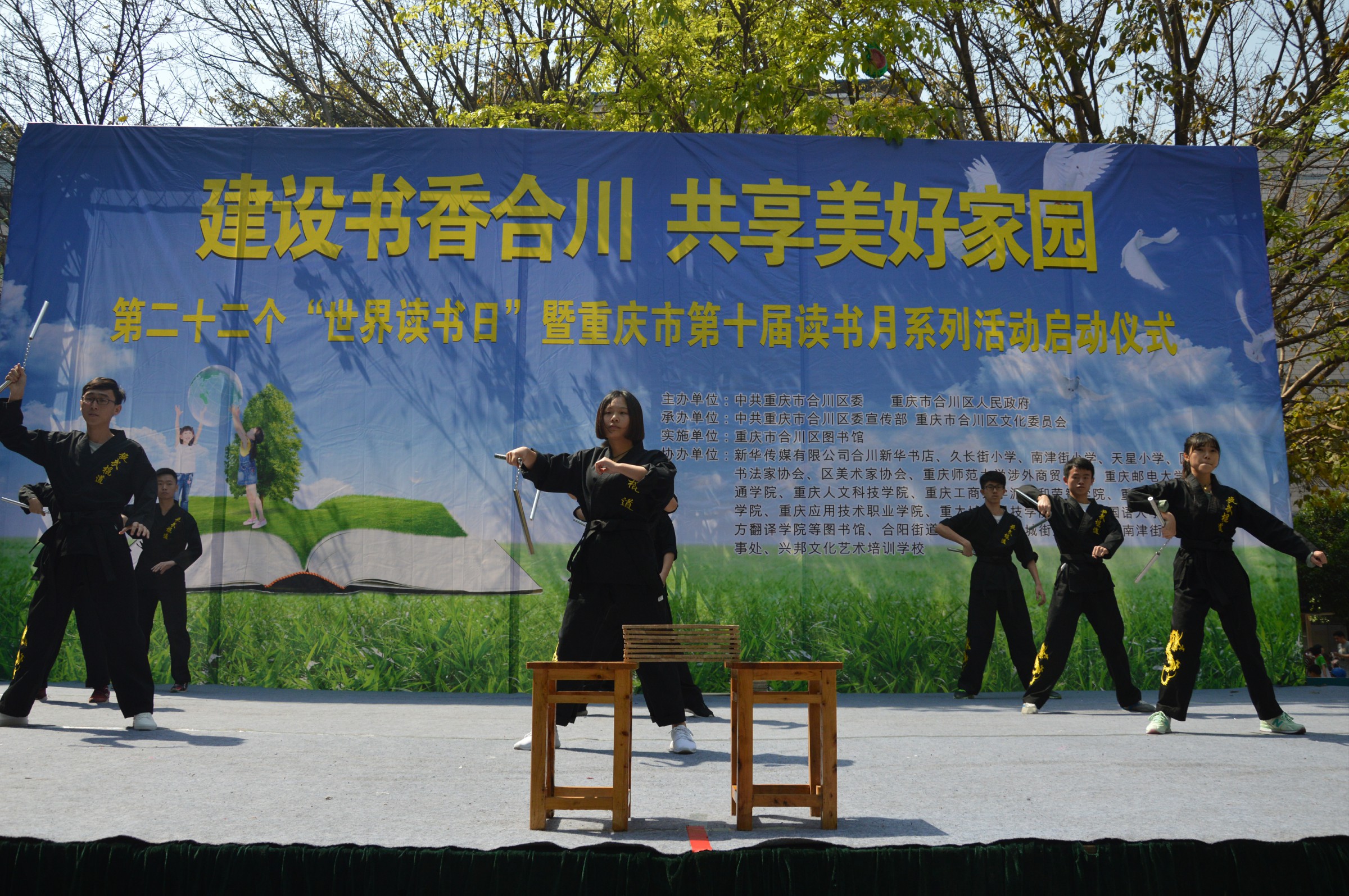 四月二十三日是第二十二个“世界读书日”,我校武道协会受邀参加重庆市第十届读书月启动仪式,并带去精彩的跆拳道、双节棍表演。古人讲究文武双全,书能增长智慧,武能强健体魄。“世界读书日,武协领读书”,我们呼吁当代大学生,积极学习知识,锻炼身体,做一个积极向上的人!