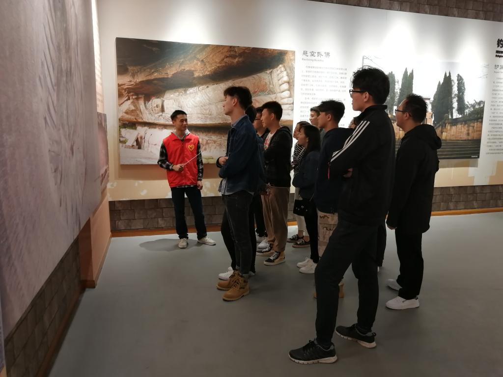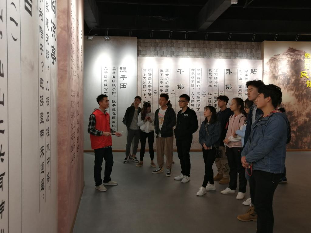 接下来的板块中,讲解员带领同学们欣赏钓鱼城的文学与艺术。同学们的好奇心被钓鱼城的民俗趣事、神话传说、名家诗画勾起,紧随讲解员的脚步听其娓娓道来,部分同学为了更好的了解钓鱼城的历史还翻阅了《钓鱼城系列丛书》。在一幅幅展画中本次参观也就到此结束,但同学们对家国的思考将继续前进。