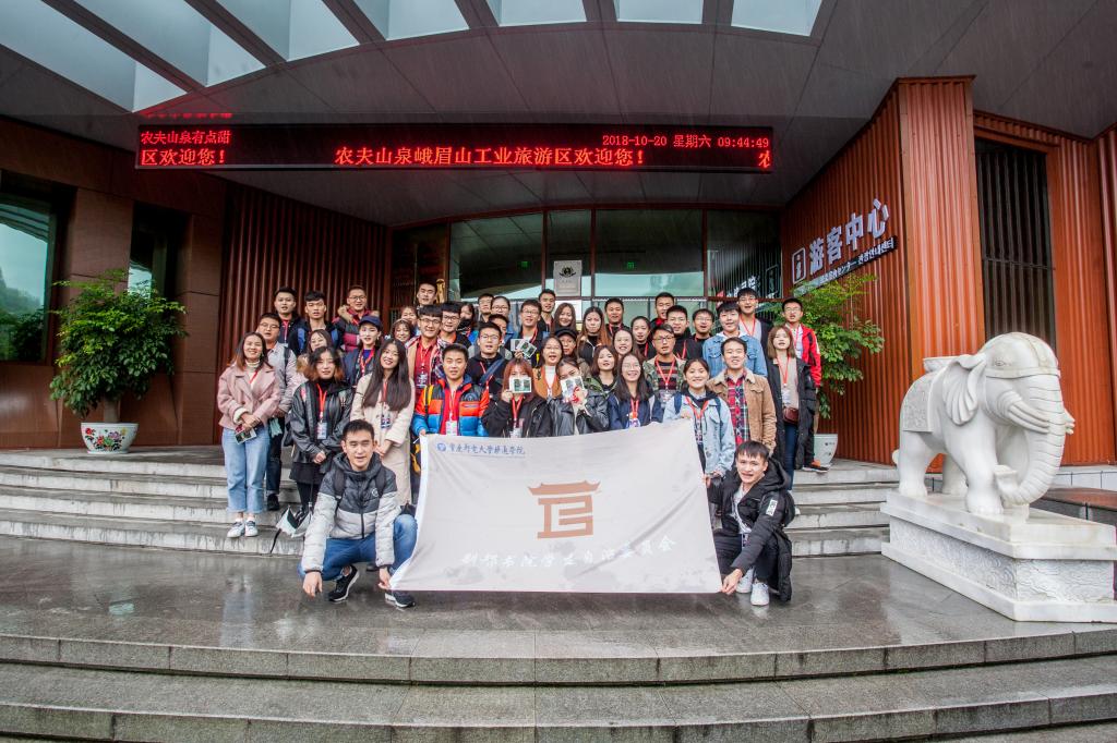 10月19日下午16:00点,由别都书院牵头组织为期三天的农夫山泉峨眉山水源地参观、团建活动正式拉开帷幕,来自校团委、校学生会、学生社团联合会、青年志愿者联合会、学生书院联合会、大学生艺术团、学生体育联合会、学生宿舍管理委员会八个校级组织以及农耕协会的46名师生共同参与到本次活动当中。