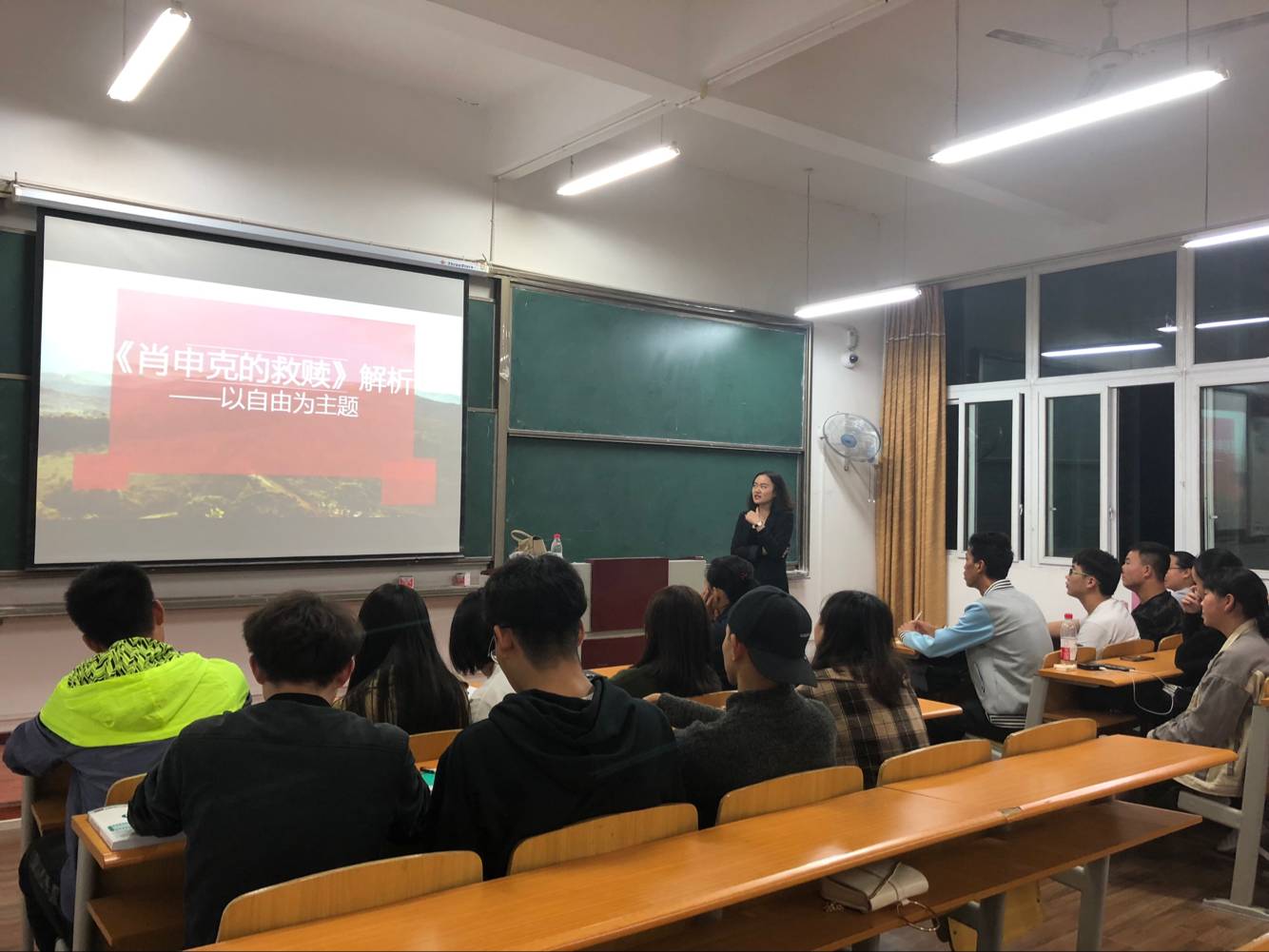在学生还在回味无穷之时,10月17日晚上7点,邢静雯老师带来一场视觉盛宴,耳熟能详的著名诗歌《自由与爱情》出自匈牙利大诗人裴多菲,里面的经典诗句:“生命诚可贵,爱情价更高,若为自由故,两者皆可抛”来论证自由的重要性。邢老师通过电影《肖申克的救赎》的精彩片段,深刻解析“强者自救,圣者渡人”之自由精神。其别具一格的授课方式,不仅赠与了学生一场别开生面的影像文化课,还让影片中隐含的自由精神浸入人心。