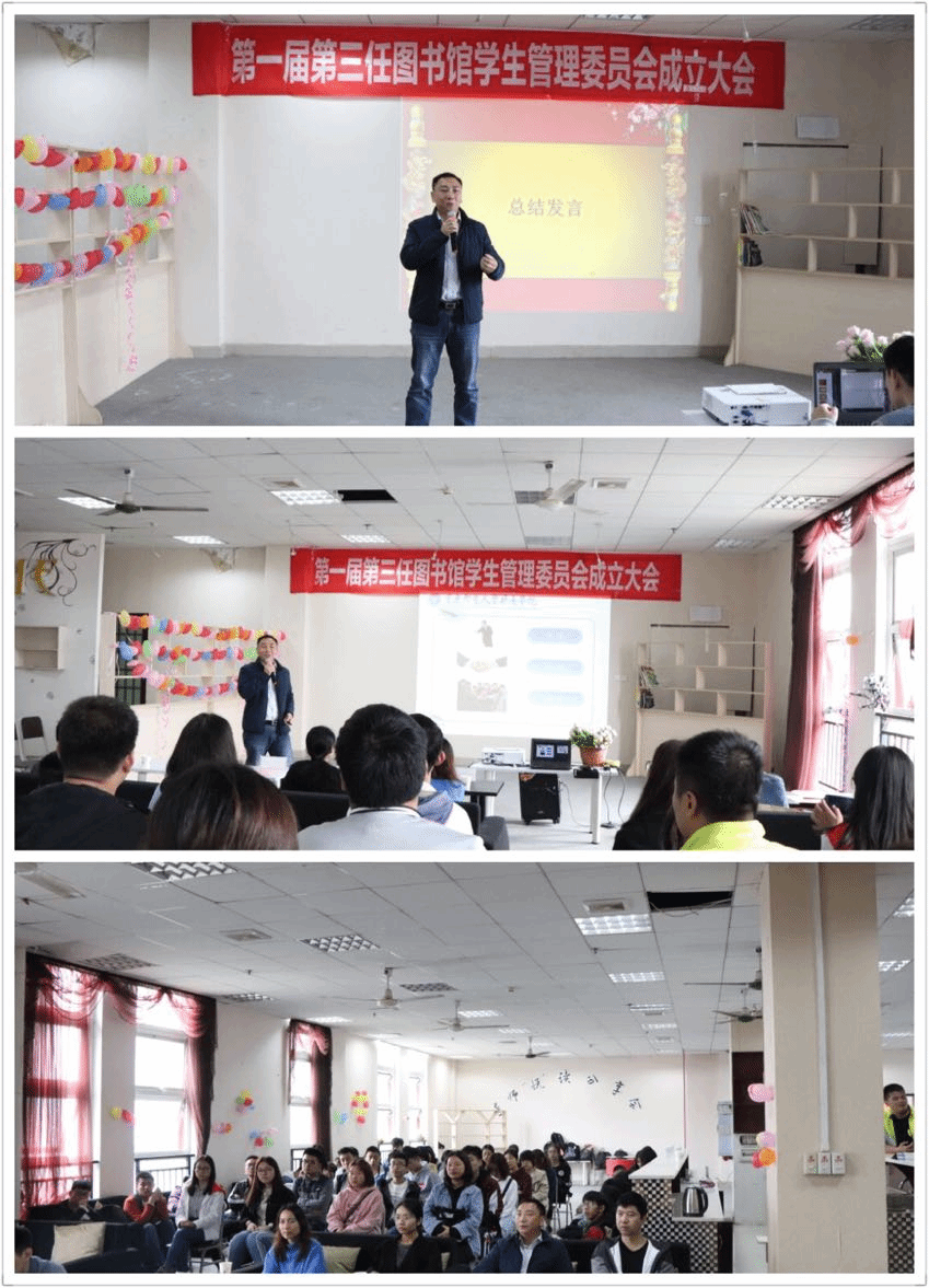 会上,秦馆长对新一届图管会的成立表示祝贺,对图管会的发展历程进行了阐述,对曾经取得的成绩进行了肯定。并建议新一届成员一是要调整心态,找准定位;二是要克服困难,坚定信心;三是善于思考,勇于创新。随后开展了干部干事培训会第一讲《我与图书馆结缘》和《学生干部素养》。