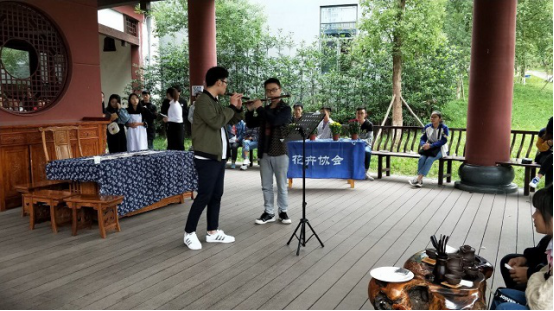 活动开始先由非遗代表及老师在茶会作欢迎致辞,然后华韵汉服协会《花水月》舞蹈表演使同学们欣赏到美妙绝伦的舞姿。茶学社茶艺表演让在场众人对中国源远流长的茶文化有了更进一步的了解。花卉协会一句“采菊东篱下,悠然见南山”让同学们了解到菊花清寒傲雪的品格,在花卉协会主讲人的讲解下了解菊花的形态特征、生态习性等方面内容。巴山文学社的汉字令游戏活跃活动的气氛,别出心裁的奖品使在场师生跃跃欲试,瞬间滔滔不绝的诗句响遍每一个角落。笛箫协会的伙伴们用传承至今八千年的笛萧演奏一曲“在水一方”令我们如痴如醉。各个社团都用他们的所具有的独特文化为我们展示他们对传统文化的理解,既生动又有趣。