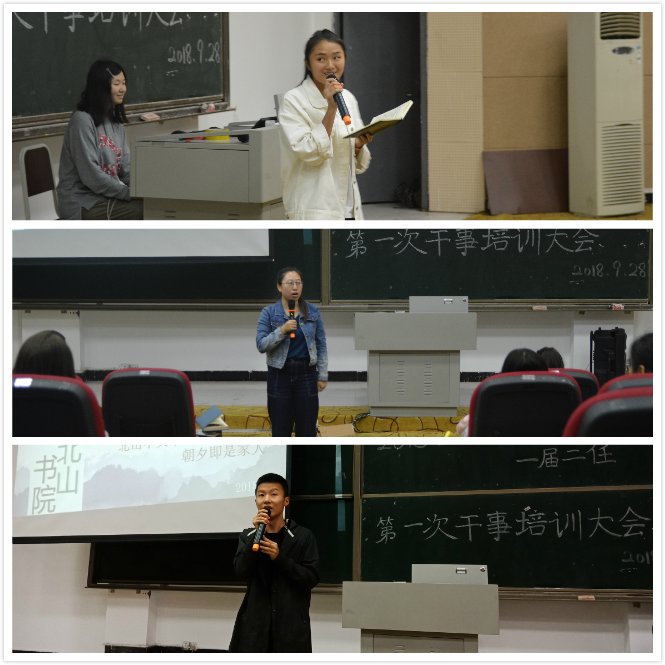 本次培训大会议程,首先由书院学生自治委员会五个部门逐一上台讲解本部门的相关工作及职能: