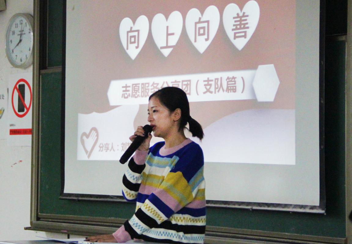 来自艺术传媒学院青年志愿者协会的刘梦密,在两年时间里她组织参与志愿者服务活动120余次,参与过两次暑期“三下乡”实践活动和中国扶贫基金会“希尔顿”公益活动等大型项目。在这些辛勤付出的背后,也收获了很多。她和大家分享了一个暖心的小故事,她曾经帮助过一位年过花甲的老人,老人连连道谢,并称她像是自己的孙女一般。在那一声声亲切的称呼中,刘梦密更加坚定了自己的志愿旅程,她也始终坚信心中有太阳,何愁没有芬芳。