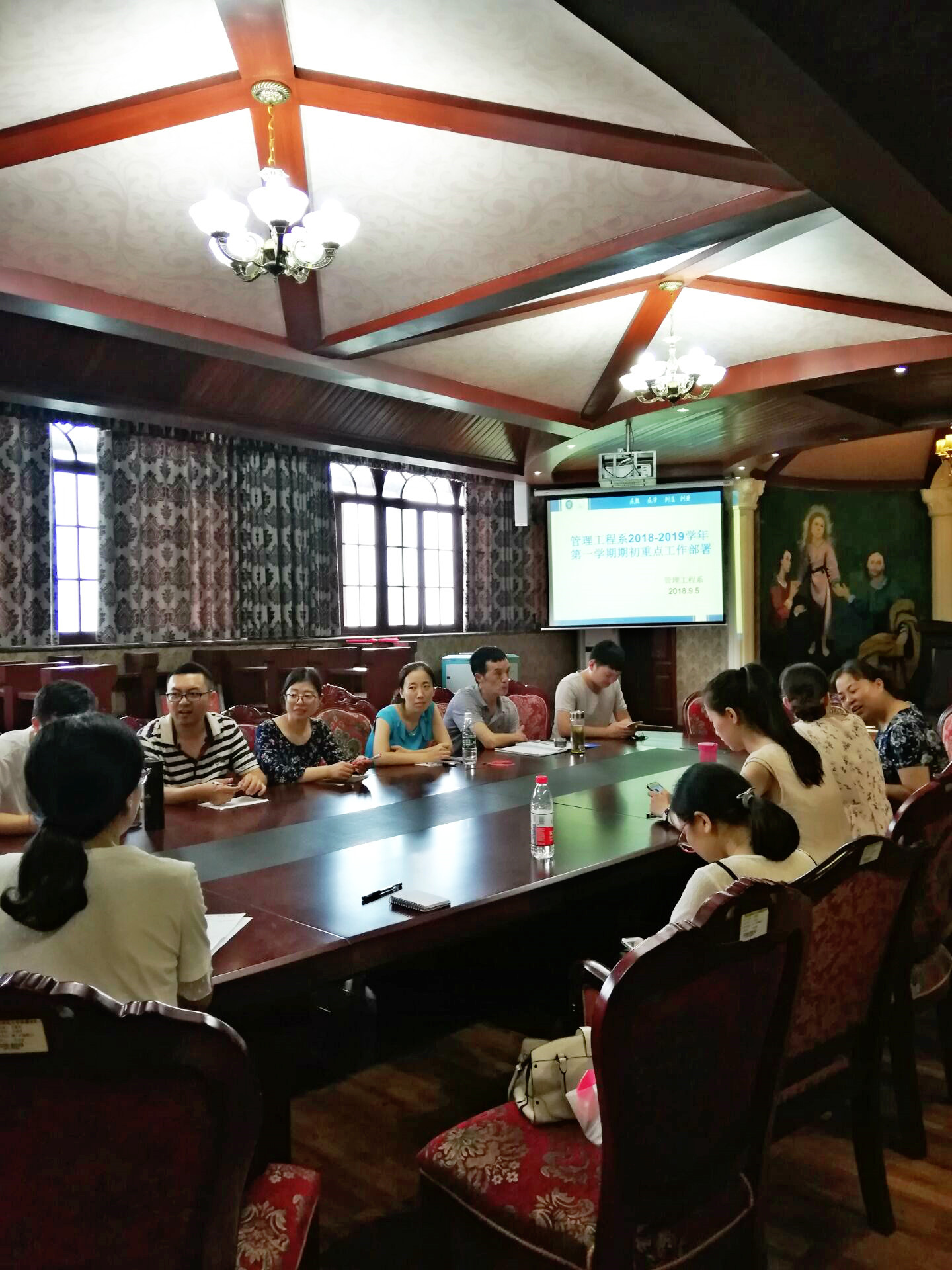 为创造一个良好的开端,明确奋斗目标,营造和谐、浓厚的开学氛围,以良好的精神风貌投入新学期的工作和学习中,9月5日下午16点,管理工程系在第二实验楼英美村召开新学期工作部署会。会议安排如下,首先信息管理教研室主任王哲和工程管理教研室主任周梦娇对新入职教师开展了岗前培训;接着周梦娇老师从教研室本学年工作重点出发带领大家讨论了新学期工作初步安排;最后系主任林毅对2018-2019学年第一学期的重点工作进行了部署。