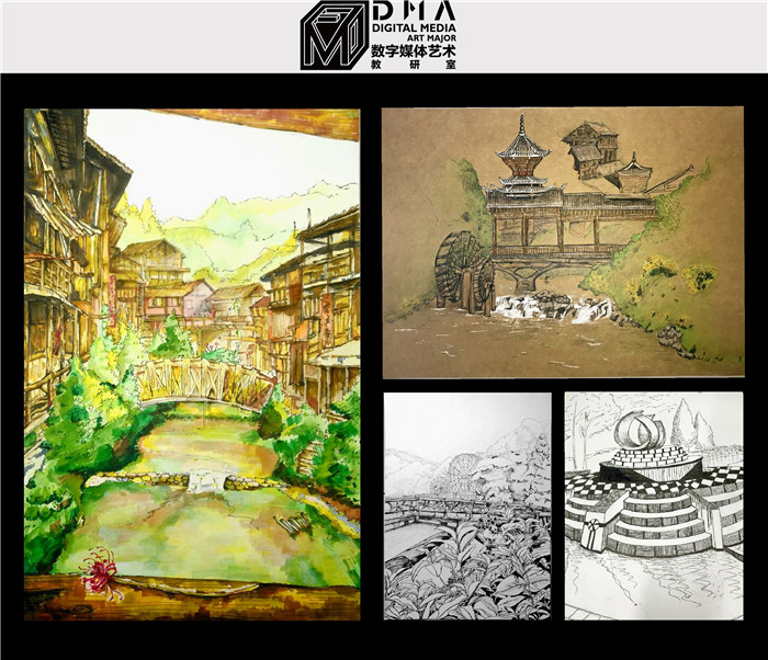 在这里同学们不仅可以在大自然中寻找灵感,还可以体验当地的民风民俗,天然的地形地貌为同学们提供了广阔的创作空间,拓宽了同学们的视野,提高了同学们捕捉创作素材的能力。同时,考虑到数字媒体艺术专业多元性的特点,本次写生实践从绘画、摄影、蜡染和元素提炼等几方面入手,以此提高同学们用不同的艺术形式来感知和表现生活。