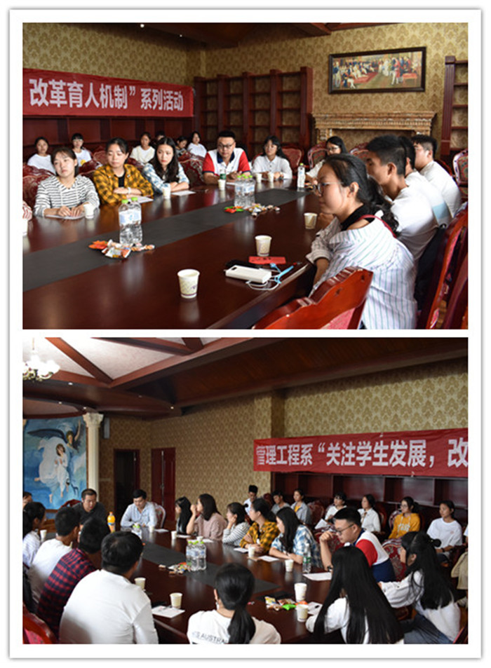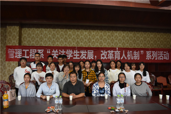 军训的结束意味着大学生活的开始。为带领同学了解学院相关信息,解答同学们在刚步入移通学院时所产生的各种疑难以及着力培养学生的主观能动性,加强师生沟通,切实关注学生的成长历程,管理工程系于9月14日下午14:30在第二实验楼5楼英美村举办了本学期首次“系主任接待日”活动。出席此次活动的老师有管理工程系系主任林毅博士,工程管理专业任课老师李红艳老师、信息管理教研室主任王哲老师以及管理工程系2018级新生代表们。