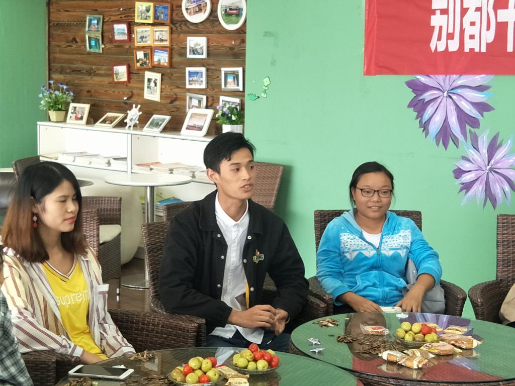 随后,在轻松愉悦的氛围带动下,在座同学都踊跃分享了自己过去一年的成长蜕变故事,其中A11宿舍楼的秦爱红与周闲同学与大家分享了一个共同的信息,她们大一的时候加入太多的学生组织,导致自己在很长一段时间忙碌得不可开交。早上六点钟出门,晚上十一点回寝室,中午经常不能按时吃饭,导致工作抓不到重点,学业也颇受影响。在大二她们决心舍掉自己不擅长和不喜欢的领域,分别专攻钓鱼城研究会与班导师的工作,使自己有更多的时间和精力去提高这一方面的能力。