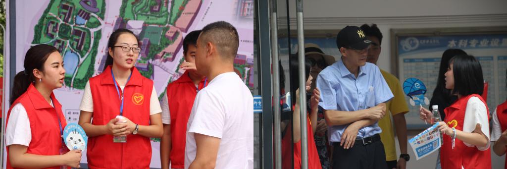 各新生咨询点、接待处的秩序井然,经过培训的志愿者们佩戴好工作牌,身着红马甲,热情地接待了提前到校报到的部分新生和家长。