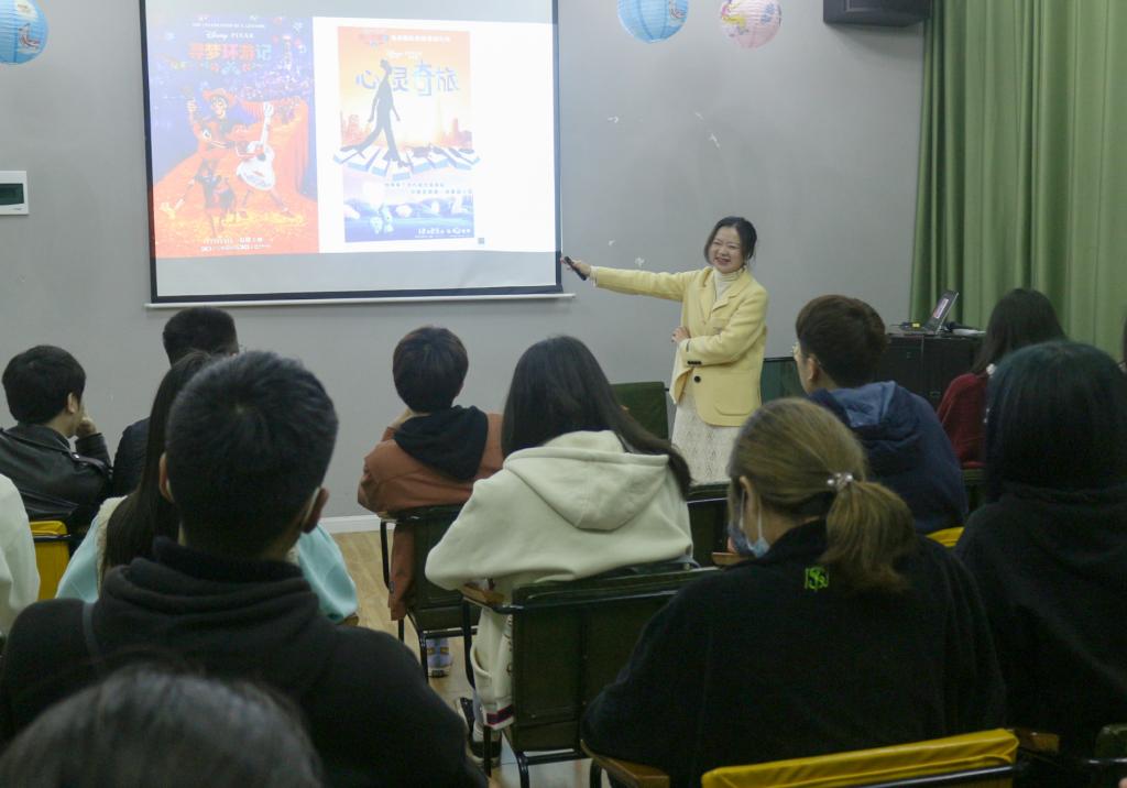 王芳老师同样以电影为例,将《大鱼海棠》、《寻梦环游记》等热门电影的海报进行对比,让同学们通过海报中的主流颜色来感受到电影想要表达的情感。