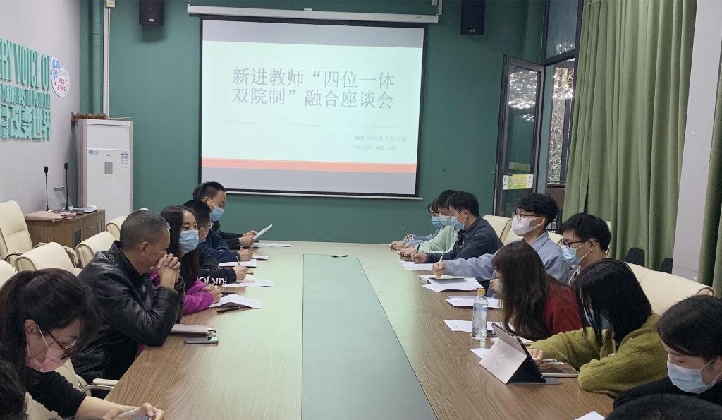 为帮助新进教师适应教育教学环境,更好地融合学校“四位一体双院制”的人才培养模式,10月26日下午通信与信息工程学院在花果书院201大型会议室召开了新进教师“四位一体双院制”融合座谈会活动。此次活动由通信与信息工程学院院长李文娟主持,副院长唐林建、学院辅导员代表和全体新进教师参加。