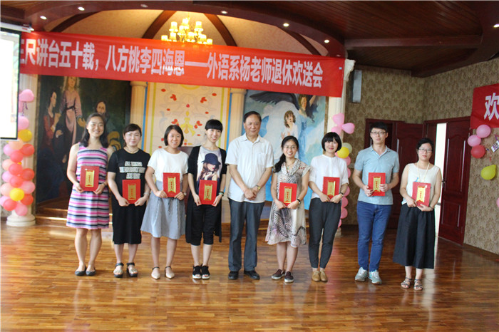 送君千里,终要一别。杨老师虽然即将告别我们的校园,他兢兢业业、严谨正直的治学态度,始终倡导全心全力上好每一堂课的精神一定会继续在年轻老师中传承下去。接下来,杨老师为外语系首届教学大赛获奖的老师们颁奖并留影赠言。大家都表示:我们接过了杨老师手中的奖状,也就承接了一份更大的责任,战斗在教学第一线的年轻老师们,必将众志成城,继续步履不停,共筑外语系更加美好的明天!