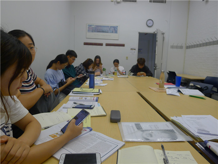 内容方面,其实和国内学的大致相同,阅读,听力,写作。但是从分班就可以明显推断出中国学生的笔试能力非常强,而外国同学则更加有优势在听力和口语上。细节上也有所不同,阅读中更在意的是发散思维,根据这则阅读老师会让你提出更多的关于文章的想法而并非文章本身。听力里更在意的不是听力结果而是听力原由。是根据哪一个句型句子才有了后来的对话和结果。写作里也不是更在意结构,而是想法了。