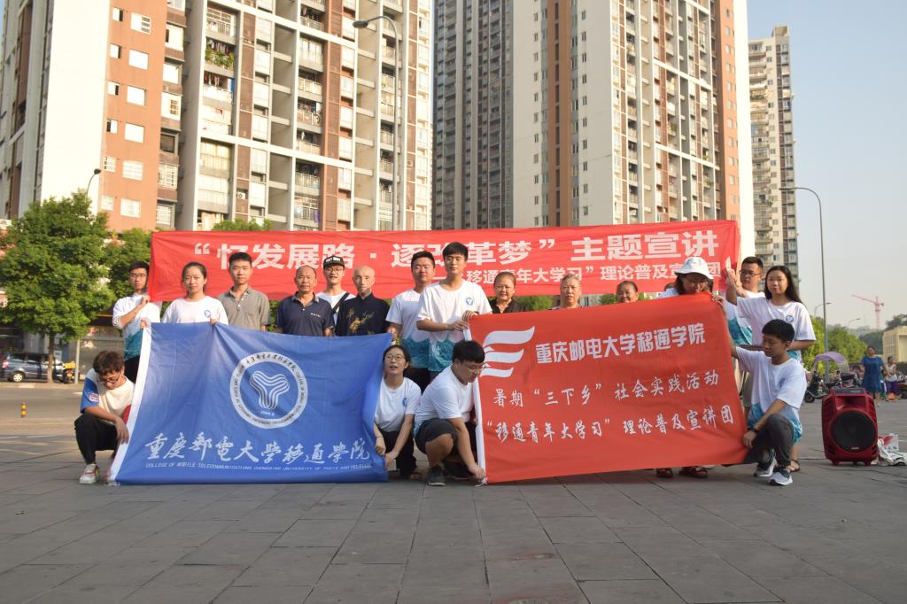 为深度学习党的十九大,团的十八大精神,和习近平新时代中国特色社会主义思想,2018年7月23日“移通青年大学习”理论普及宣讲团走进合川义乌社区。以通俗易懂的语言为当地居民宣讲习近平新时代中国特色社会主义思想和党的十九大精神,用详细的事例讲述党的十八大以来致力改善民生的具体举措,号召广大青年勇做新时代新思想的新青年。