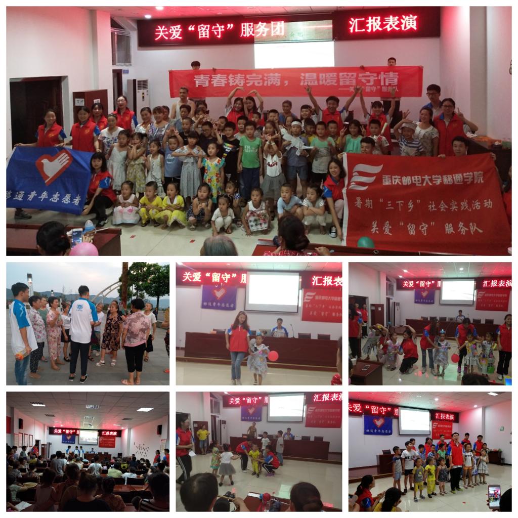 “轻轻敲醒沉睡的心灵,慢慢张开你的眼睛……”阵阵萦绕的歌声回荡在耳边。2018 年7月22日,关爱“留守”服务队的志愿者们在合川土场镇三口社区开展了一场以“牵手关爱,情暖童心”为主题的汇报演出。