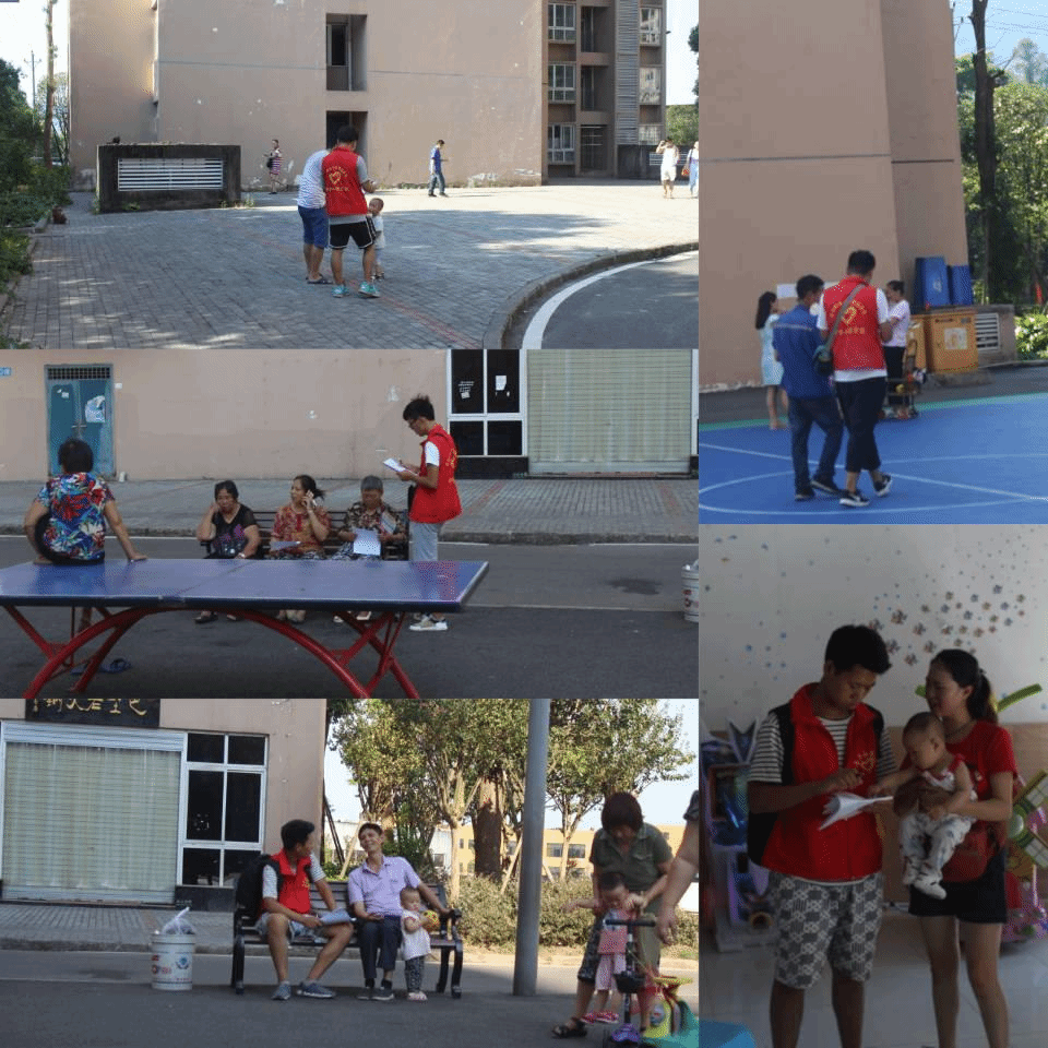 晚上志愿团在社区广场上,再次为小朋友们开展了游园会。同时部分队员与社区大妈们一同参与到坝坝舞锻炼当中。