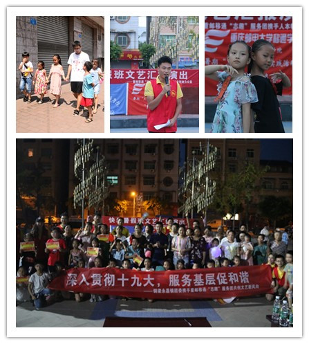 经过一番辛苦的排练,汇报演出在社区广场顺利举行。自此,志趣服务团在铜梁永嘉镇为期六天的暑期三下乡活动圆满结束。六天来,面对高温,志愿者们表现出了顽强的斗志,积极备课,细心指导。小朋友们也表现出了对于学习的强烈好奇心。家长和当地工作人员对此次三下乡活动表示了崇高的赞赏。