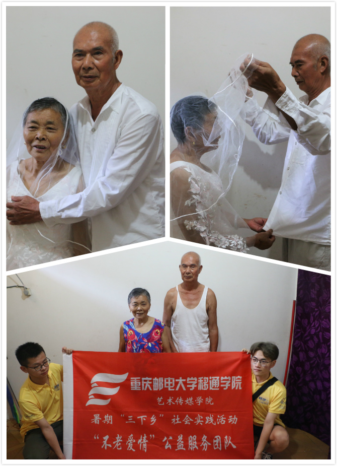 2018年7月23日星期一,重庆邮电大学移通学院艺术传媒学院“不老爱情”公益服务团队的志愿者们又前往了一对老人家里,为老人拍摄了婚纱照并进行了访谈,活动即将结束之际,志愿者们回访了两队老人的家庭,确保详细记录下了老人们的家庭地址及联系方式,以便活动后期将照片冲印后邮递到老人手中。