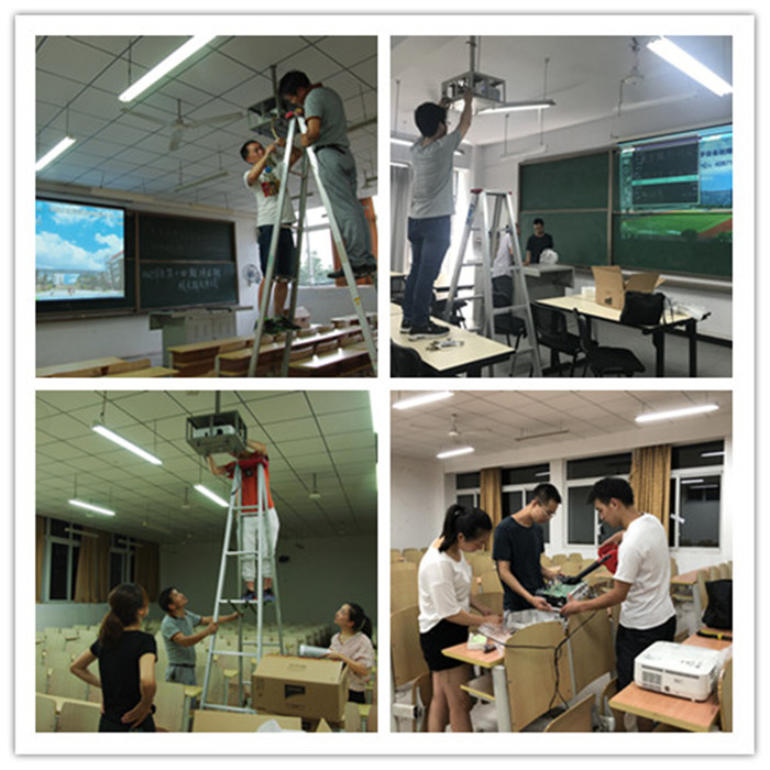 炎炎烈日,为了确保新学期教学工作正常有序的进行,提升我校教育教学质量,网络与信息管理中心全体教师按照领导指示,战高温斗酷暑,齐心协力,分工合作,在暑假期间对二教、五教、艺术楼、北校区书院等部分严重老化、模糊的投影仪、电脑等硬件设备进行更新和修复工作,对发现的问题进行及时解决,确保教室设备处于良好的工作状态,在投入新的设备后,对其他部分效果较差的投影机和多媒体设备经过必要的清洁、更换光源、替换过损线路等,进行二次更新施工,从而更加合理有效地加大设备使用效果和服务年限。
