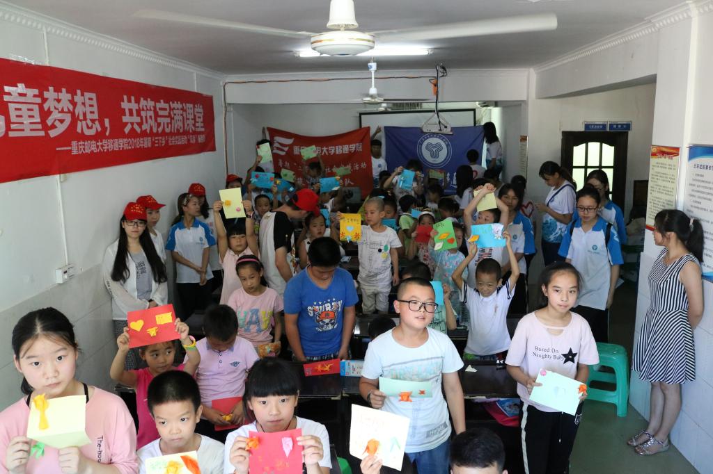 经过一段时间的宣传知识环节,志愿者还为小朋友们准备了手工教学。“小朋友们,我们先把手里的纸对折,再这样子翻开......”小朋友们在志愿者们的帮助下开始折纸,原本简单的纸在小朋友手中变成花,一朵朵手工花朵展现出来。小朋友的笑容和手中的花朵一齐开放,在将这些手工折纸粘在卡片上,一个个独具特色的贺卡就诞生了,志愿者们还教会小朋友在卡片上写字,并拿回家送给的自己的亲人。