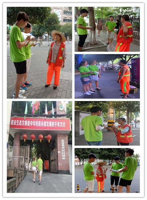 活动开展的第二天,“知行环保·逐梦青山”实践团去到了合川大大小小的街道,和环卫工人们一起做这个城市的“美容师”。在此次活动中,成员们调研了20余名环卫工人,成员们不仅了解到了环卫工人的艰辛,也让成员们对这个社会有了一个新的认知。下午,团队成员们去到了合川区环保局,和那里的工作人员了解了一些关于环保方面的问题并且取回来了一些环保资料,以便团队后期的活动看展。
