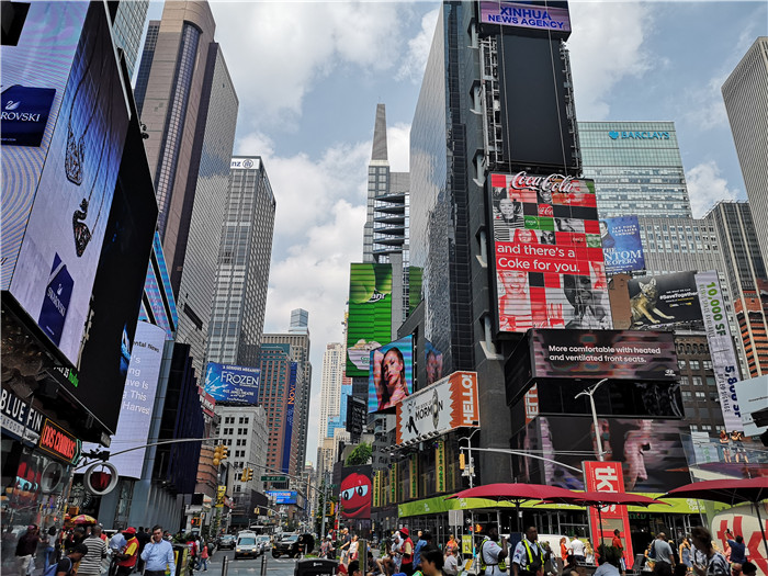 下午是探索纽约的自由时间,我们乘坐古老的地铁来到纽约时代广场。时代广场是曼哈顿的一块繁华的街区,被成为“世界的十字路口”,百老汇的剧院、亮眼的霓虹光管广告、跳动的宣传板报等,让这个拥挤的城市更加厚重感但又不失鲜艳。纽约的街头拥挤却大多干净,垃圾分类随处可见,我们跟着谷歌地图穿过十几条街道,差点迷失方向。在这里可以既看到巨大简约玻璃建筑的奢侈品店,又可以看到街头贩卖剪纸的移动摊位。纽约很大,我们还将继续在此用脚步丈量它的历史、用心去探索它的神秘。