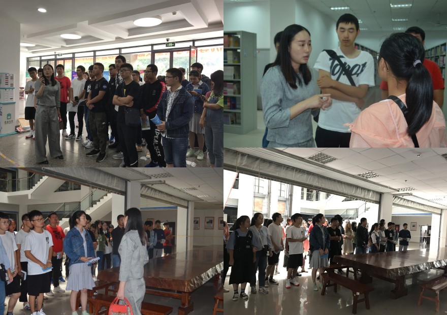 专题讲座及小组讨论后,在助教老师们的带领下,2019级的新生们有序的来到图书馆,从一楼的文化大厅、各类资源宣传栏及活动告知栏到数字图书借阅器;二楼的图书馆“三部一室”,育人书桌以及书库;我们的助教老师耐心的讲解相应规章制度和设备使用方法,指导学生切身体验,让参与的每个新生都感受到身与心的愉悦。