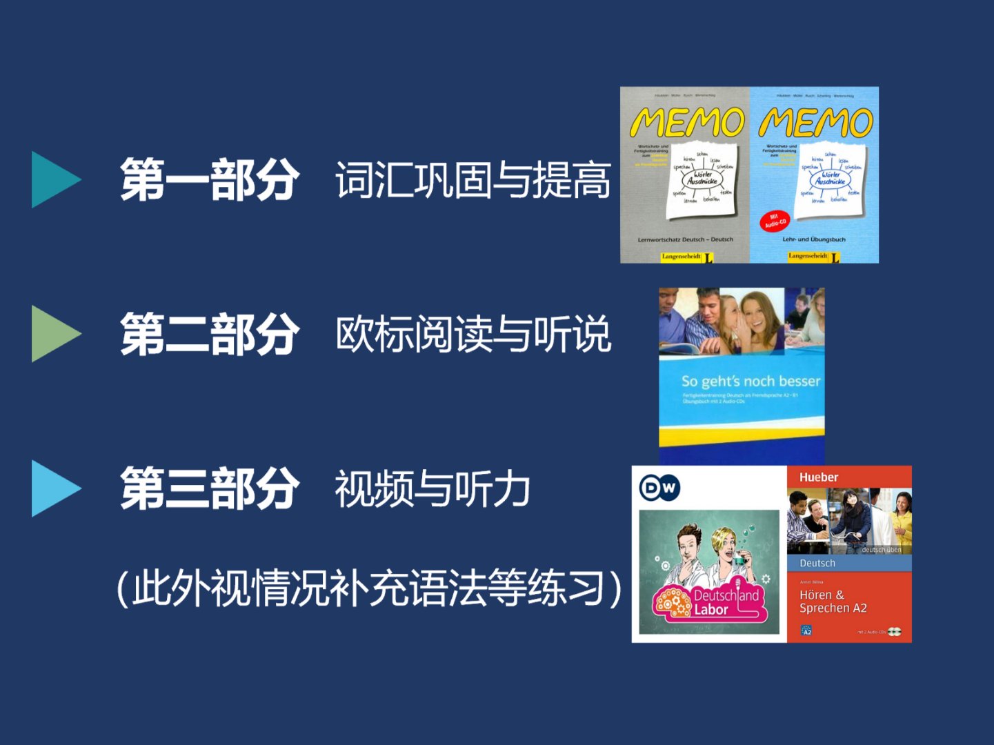 开课至今,2017级德语B2课程的老师和同学们团结一心,克服了种种困难。有的学生没有教材怎么办?水平不一怎么办?教师在充分沟通、了解学生整体水平和学习短板的基础上,鼓励大家树立信心、拿出热情开好头。通过搜集查找大量资料,教师以周为单位汇编教学材料,涵盖词汇、阅读、写作、听力、视频等各种内容和形式,并充分考虑课前预习、课上互动、课后监督学习的全过程,做好了充足有序的准备,通过“云班课”平台按计划按时段上传并收集课后作业和反馈。